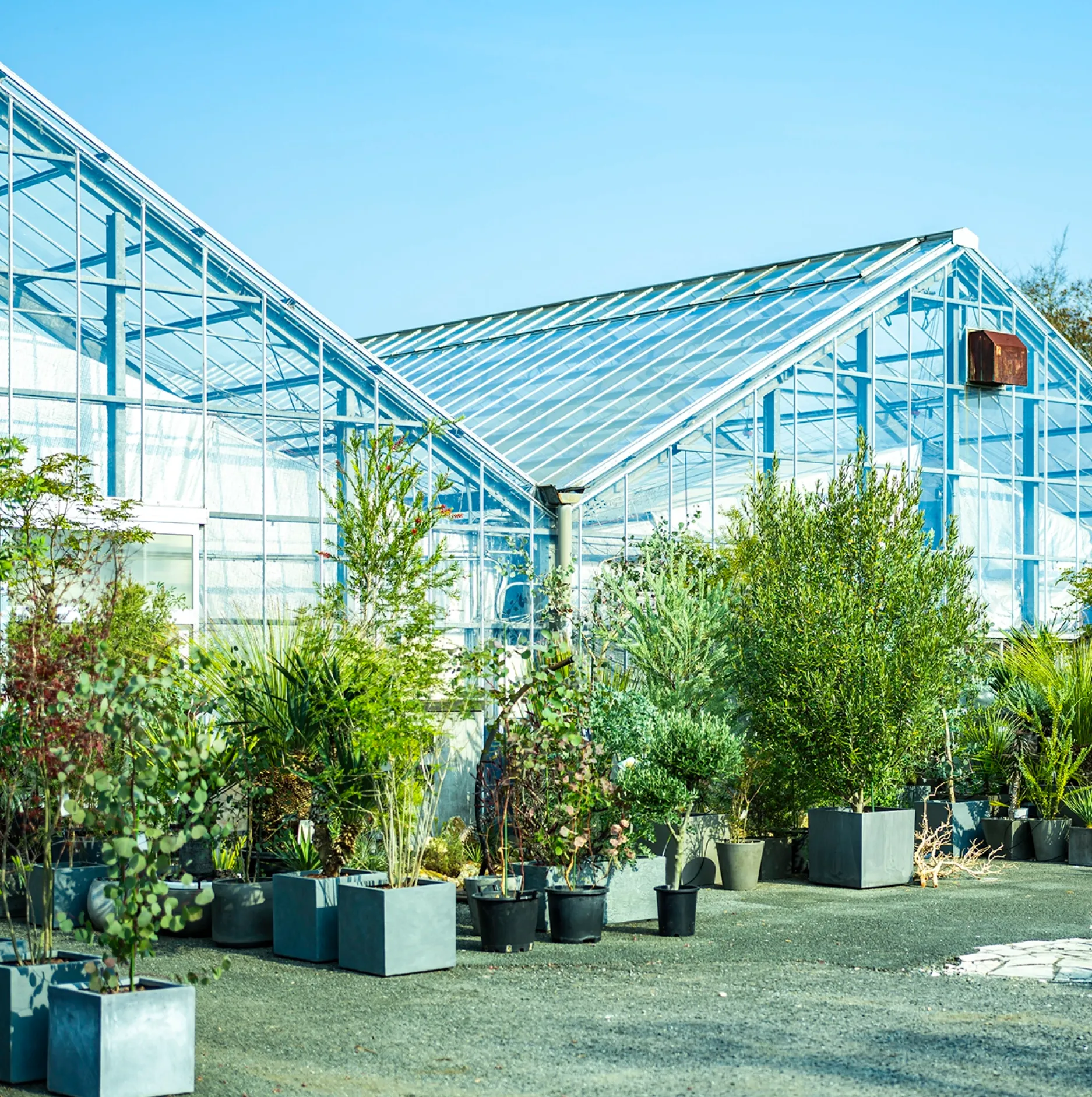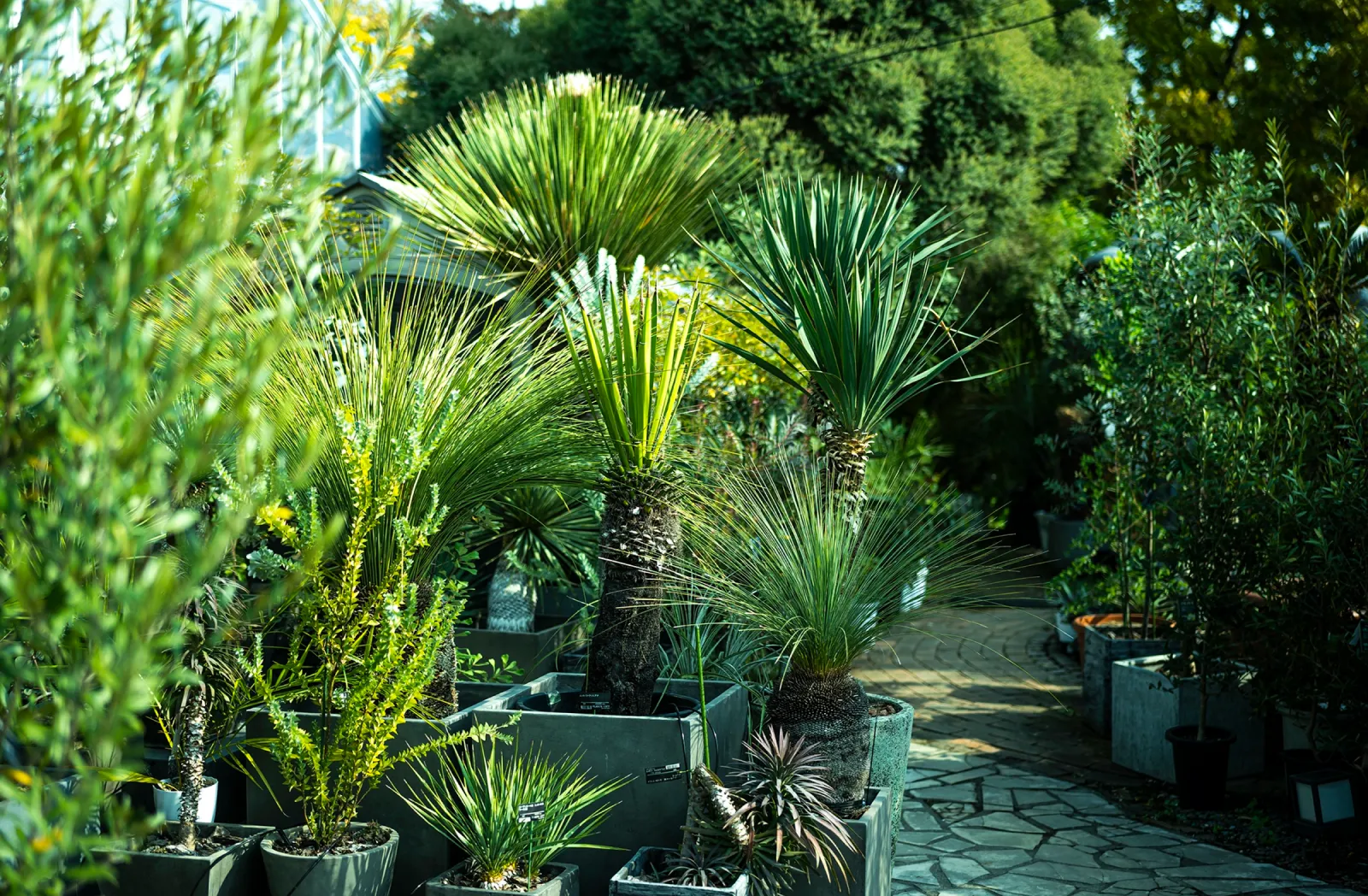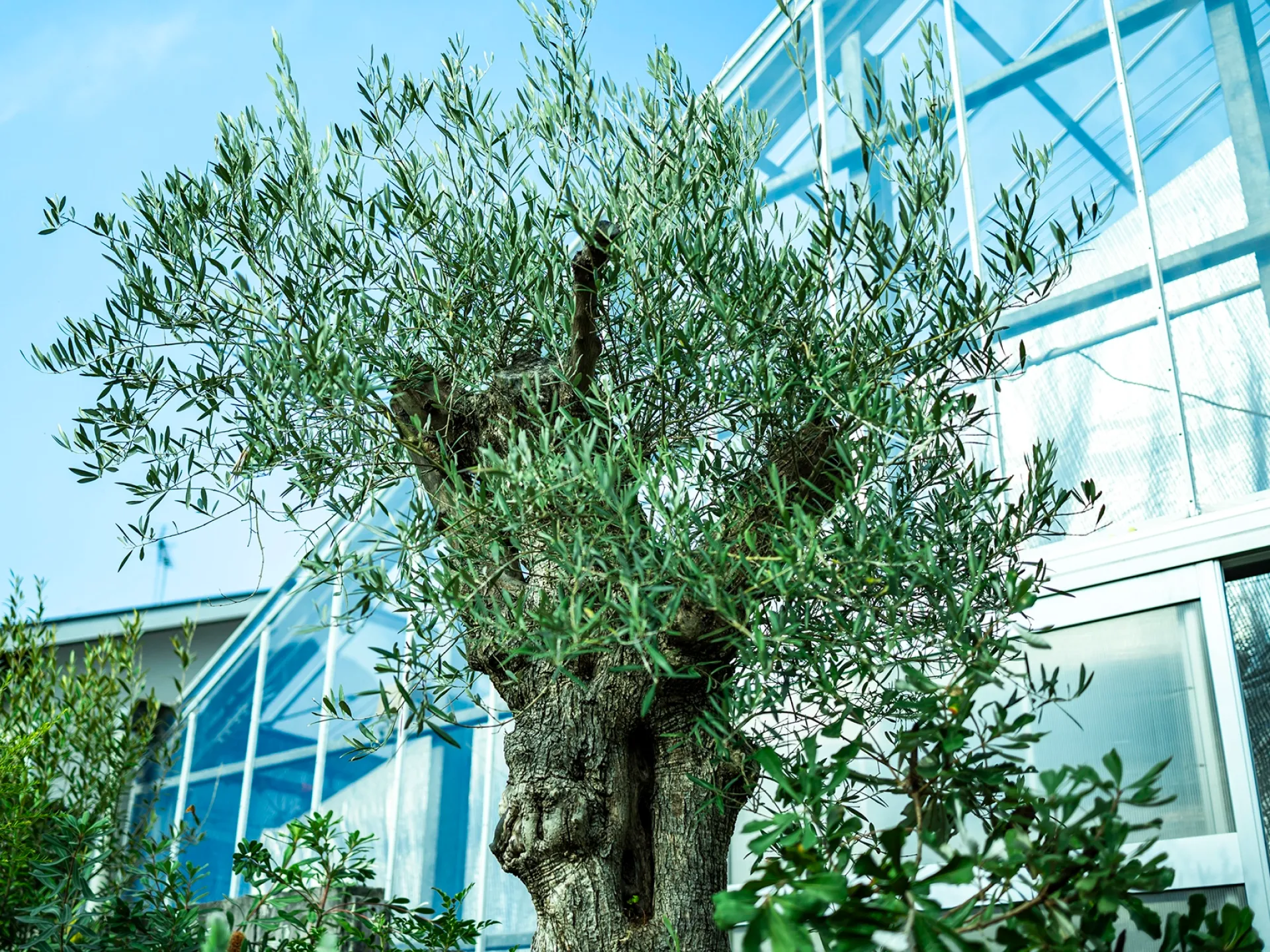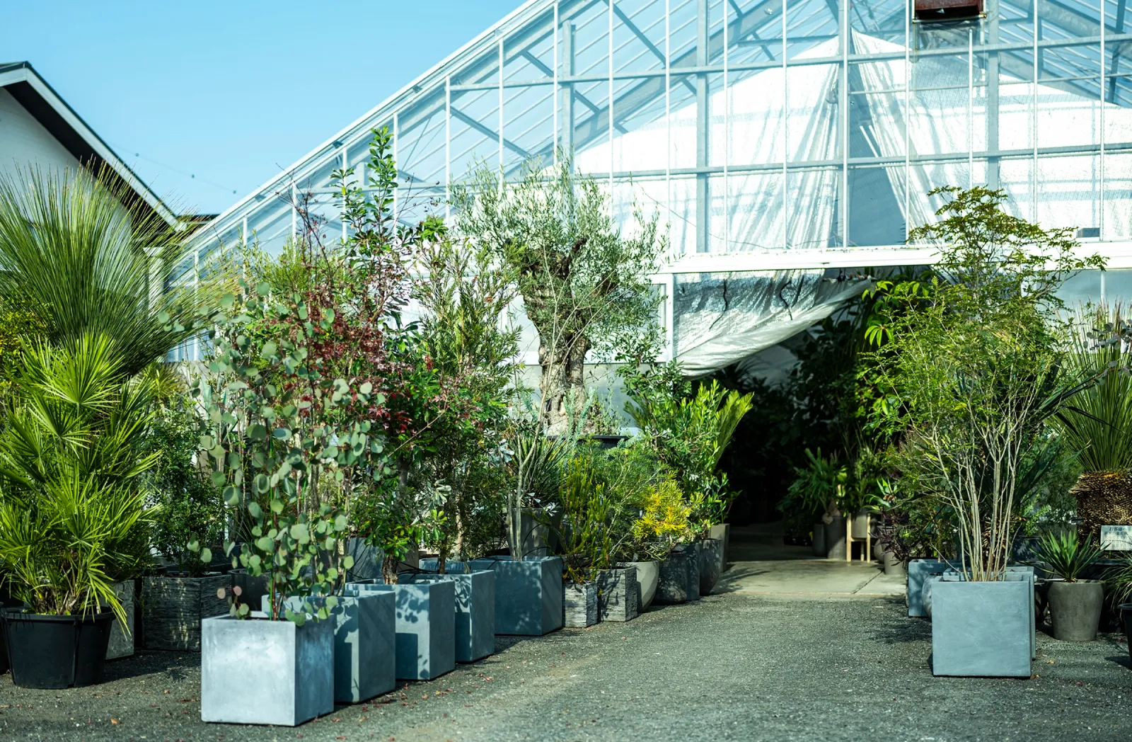 常時200種・5,000鉢を超えるコレクションの中には、300年の風雪を経た荘厳なオリーブの古木など、ここでしか出会えない圧倒的な存在感を放つ大鉢も並びます。