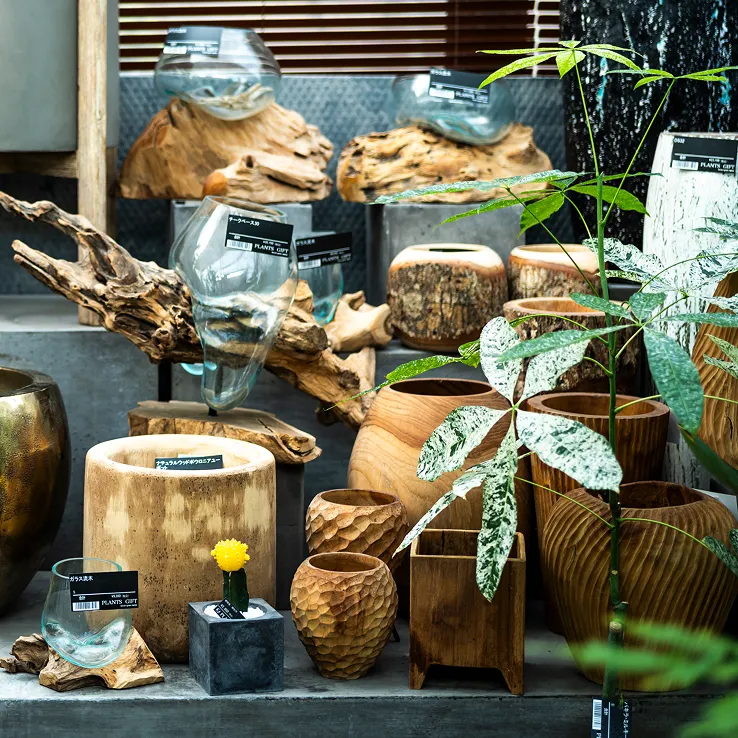 洗練された鉢とのコーディネートで、日常に豊かさを添える一鉢をご提案します。専門スタッフによるメンテナンスも承ります。